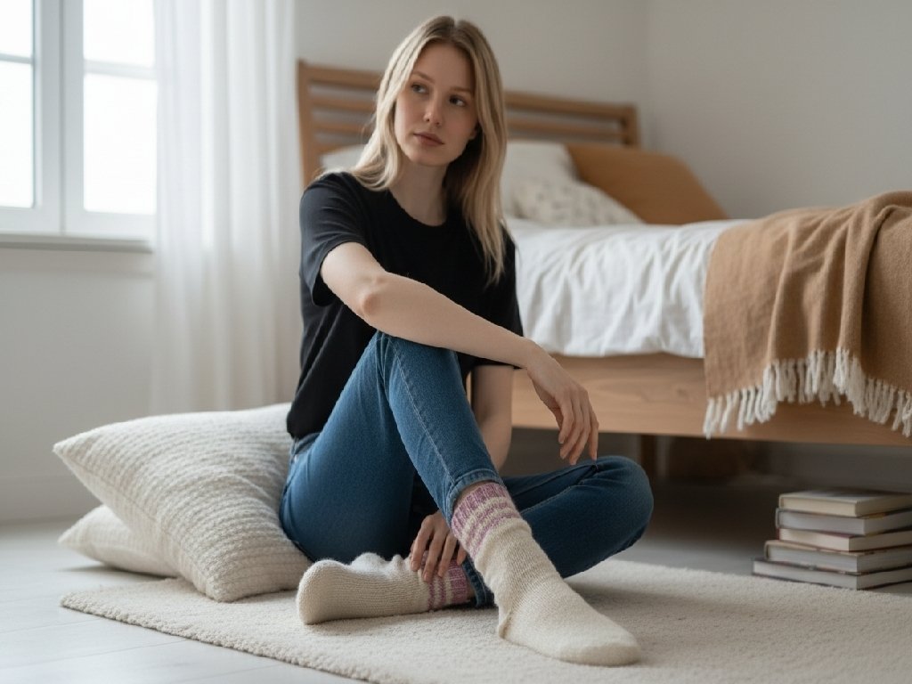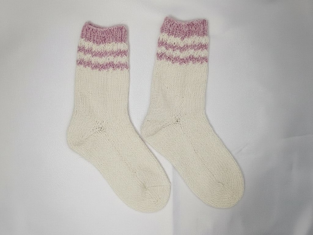 Ručně pletené vlněné ponožky ze 100 % merino vlny. Jemné, hřejivé a pohodlné pro celodenní nošení.